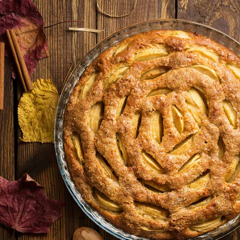 Der Duft von frisch gebackenem Apfelkuchen mit Zimt, Muskatnuss und Vanille erfüllt die Küche mit wohliger Wärme.